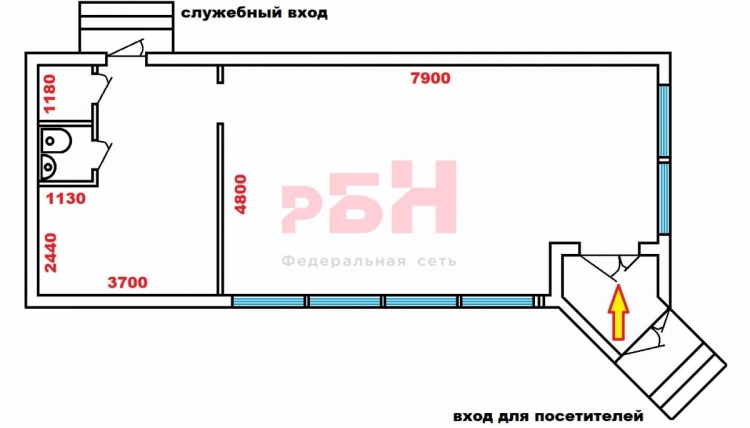 Объект используется под магазин продуктов, может быть переформатирован под кафе или бистро.