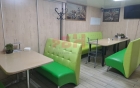 -два этажа, на первом бар с кухней и санузел, в подвальном помещении офис и санузел;