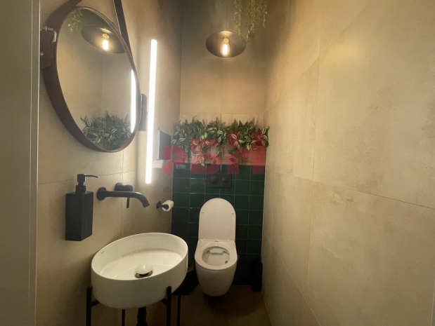 -Дизайнерский ремонт: окна+перегородки – алюминий, пол - керамогранит 1200*600, потолок – стиль лофт, стены – обои под покраску, немецкие радиаторы;