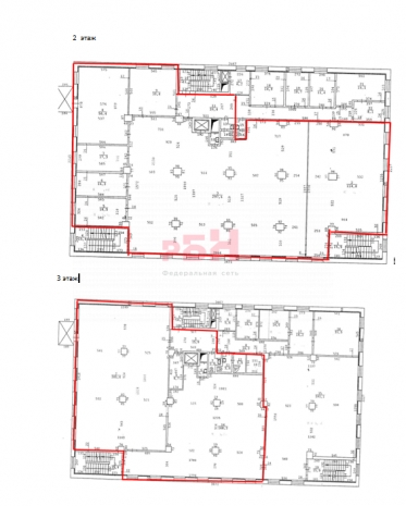 -помещение расположено на 2-ом и 3-ом этаже этаже 4-х этажного здания, находящегося на первой линии;