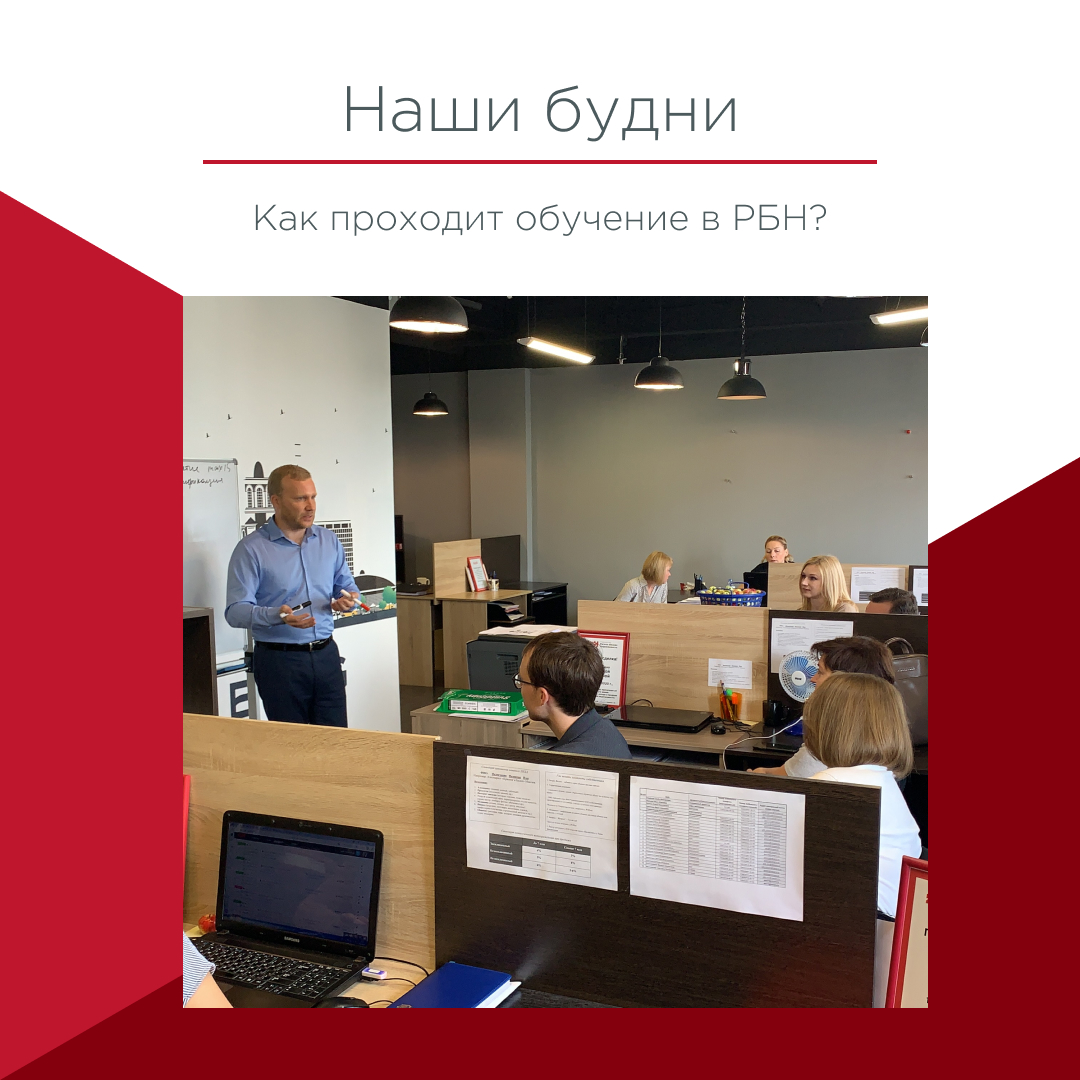 Только практика и полное погружение в профессию! Таков принцип работы в РБН. Перед началом своей карьеры каждый стажер проходит обучение, оно состоит из 7 блоков. Они включают: изучение стандартов и регламентов компании, юридический блок, знакомство с коммерческой недвижимостью и ее классификацией, подробно изучается алгоритм работы с собственником и объектом.