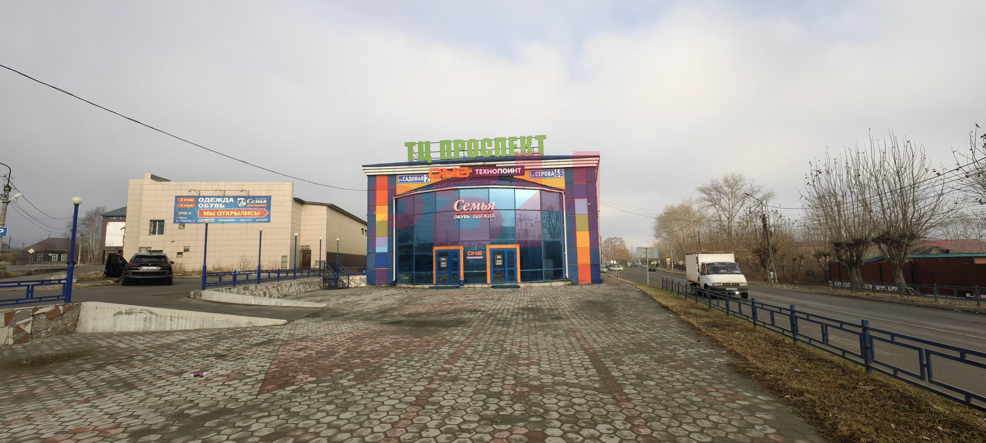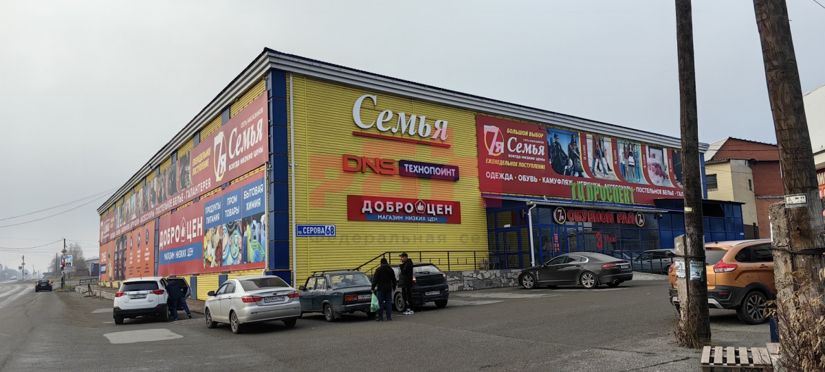 - на 1ом этаже расположены: ТС Доброцен, DNS технопойнт, на 2ом этаже: магазин "Семья", на 3ем этаже: магазин "Обувной рай";