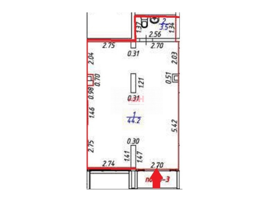 - нежилое помещение 47.7 кв.м расположено на 1 этаже жилого дома в ЖК "Меридиан", в зоне плотной жилищной застройки;